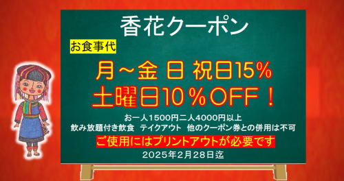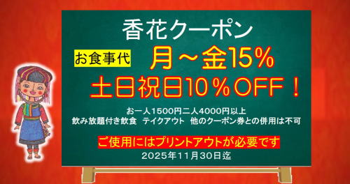 飲み放題の飲食やオードブル、持ち帰りには使えません。