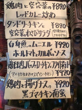 エスニックでオリジナルな創作料理 随時更新していきます おすすめ料理は入替の為古い料理は販売終了となります。 人気メニューはグランドメニュー作成時に取り入れる予定です。 料理の注文時につくれるかどうか確認して下さい。 ページの上部にある料理は作れると思います。 |